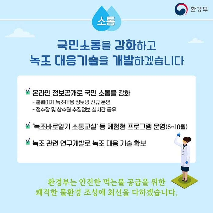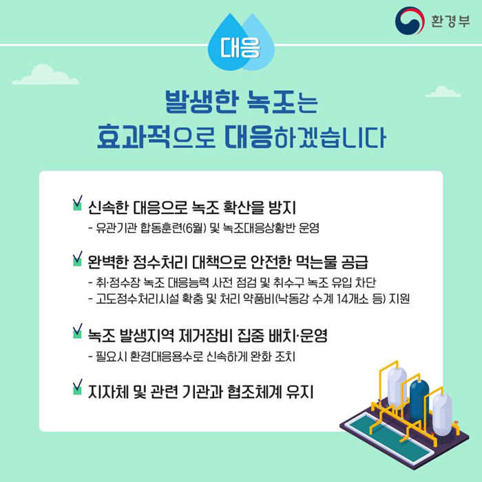 체계적인 녹조대응으로 먹는물 안전을 확보하겠습니다!