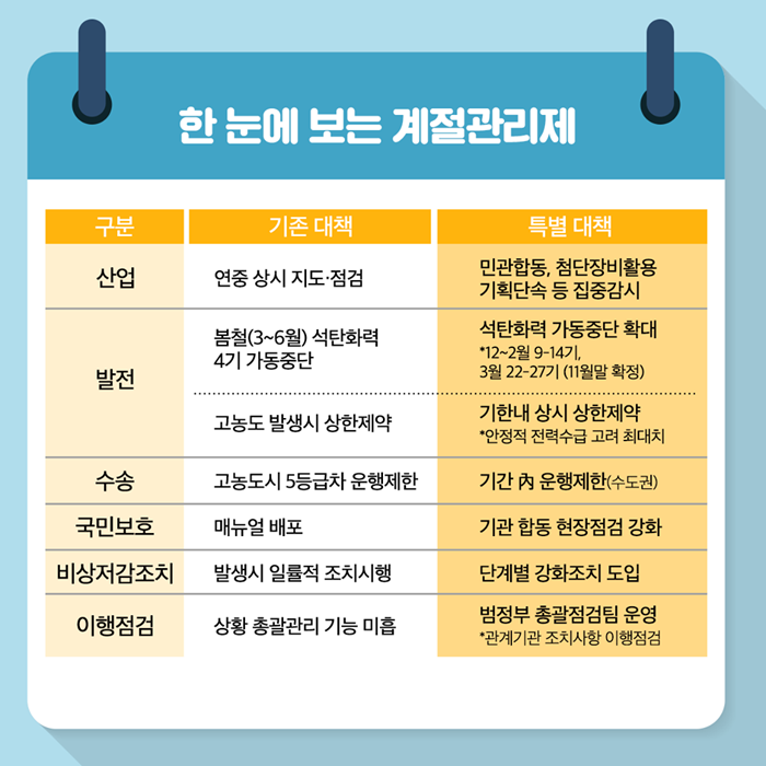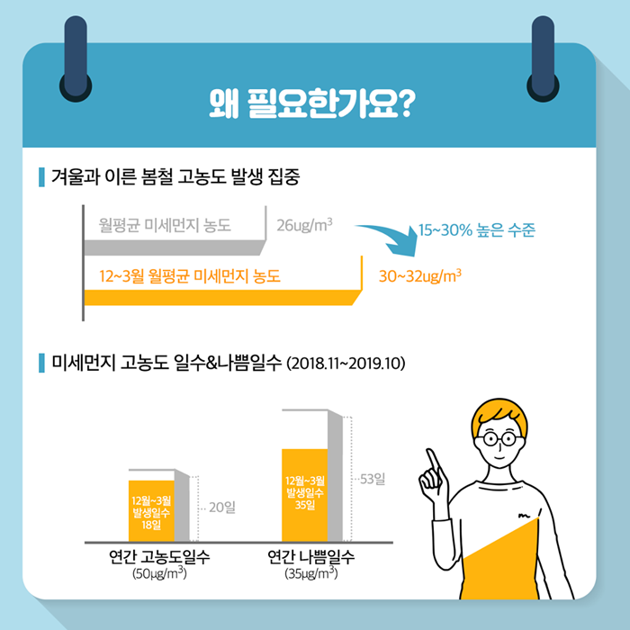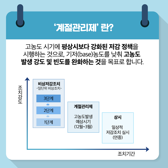 미세먼지 고농도 시기 계절관리제를 실시합니다.(12월~3월)