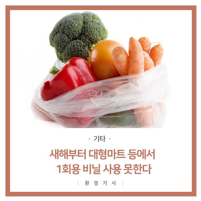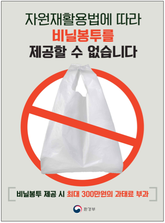 2019년 1월 1일부터 전국 2,000여 곳의 대형마트를 비롯해 매장 크기 165㎡ 이상의 슈퍼마켓 에서 1회용 비닐봉투 사용이 금지 됩니다.