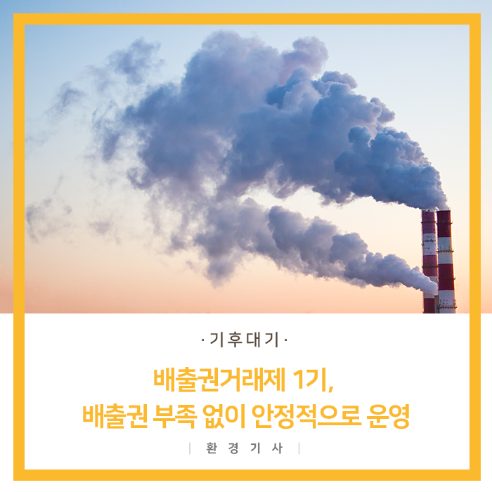 환경부는 지난 8월, 할당대상업체의 2017년도 배출권 제출이 완료됨에 따라 온실가스 배출권거래제 제1차 계획기간('15~'17년)이 마무리 되었다고 밝혔습니다.