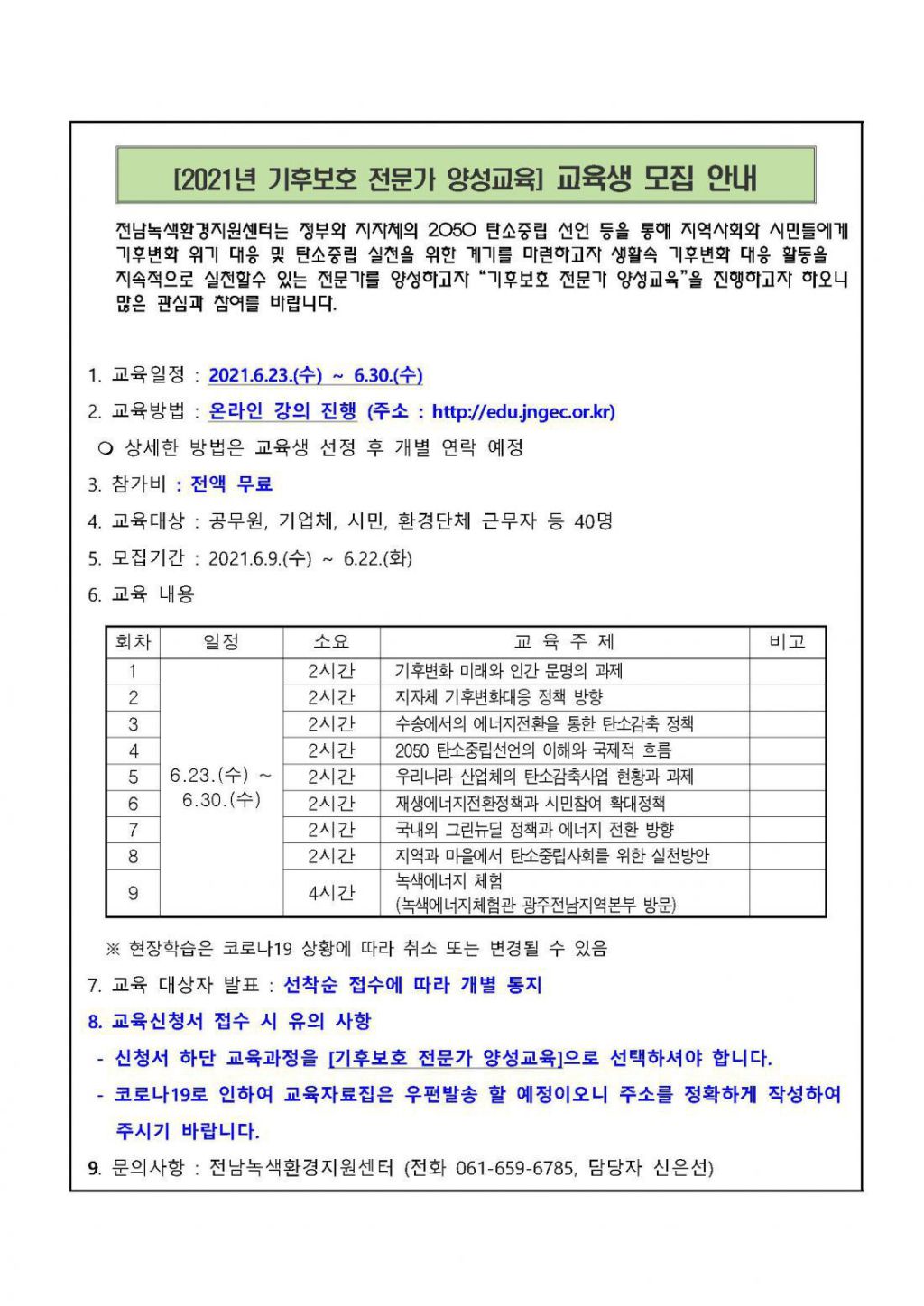 2021년 기후보호 전문가 양성교육 교육생 모집