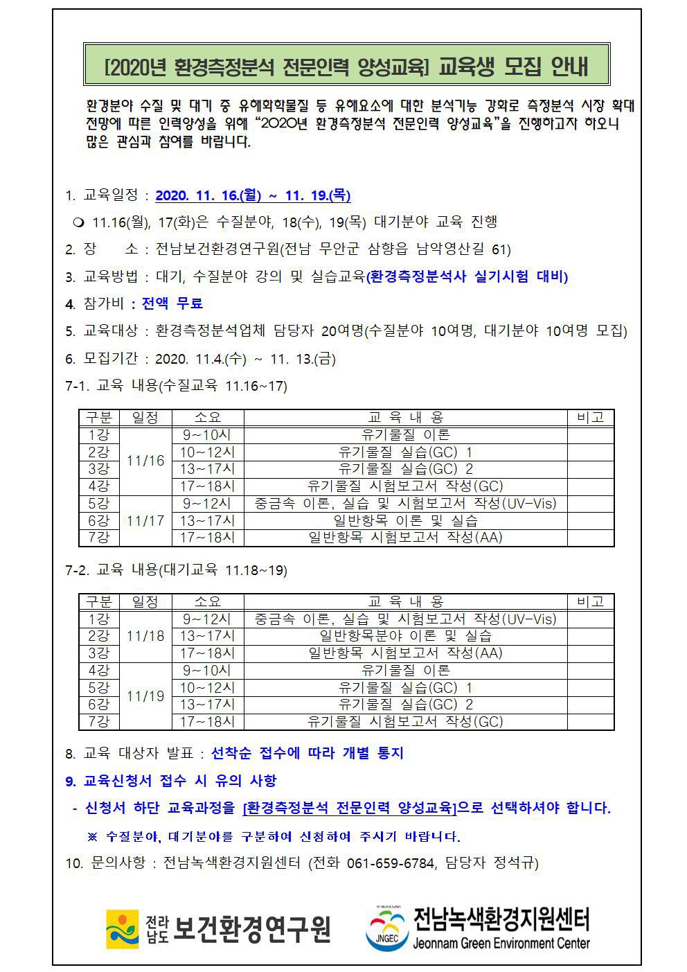 [2020년 환경측정분석 전문인력 양성교육] 교육 안내