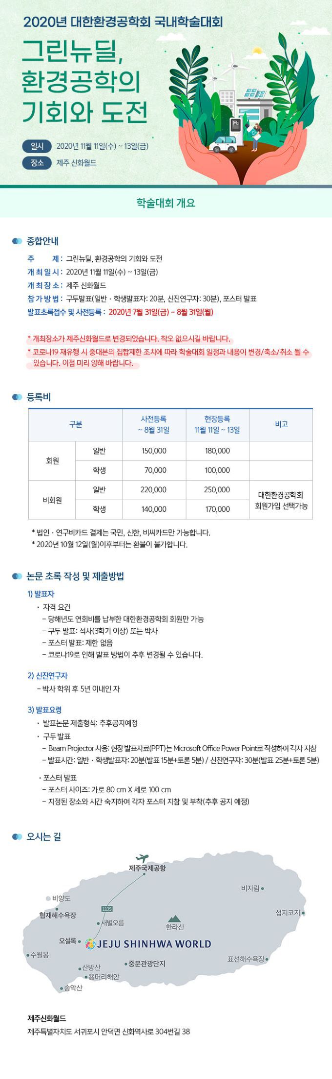 2020년 대한환경공학회 국내학술대회 안내(2020.11.11-13, 제주 신화월드)