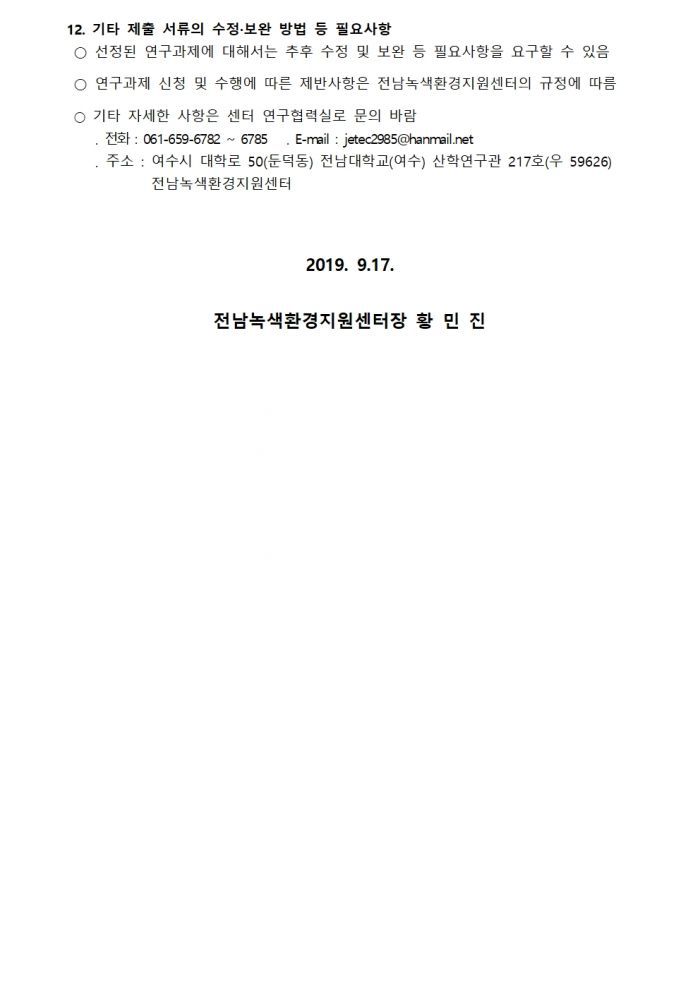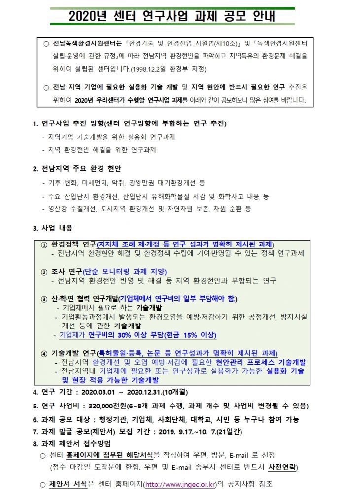 [2020년 전남녹색환경지원센터 연구과제 공모 알림]