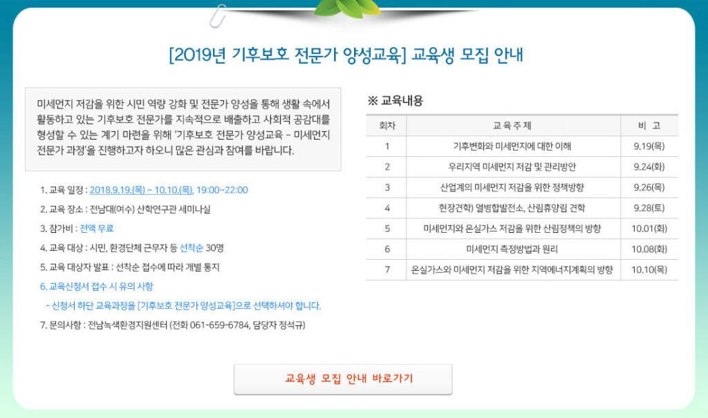 2019년 기후보호 전문가 양성교육 교육생 모집 안내