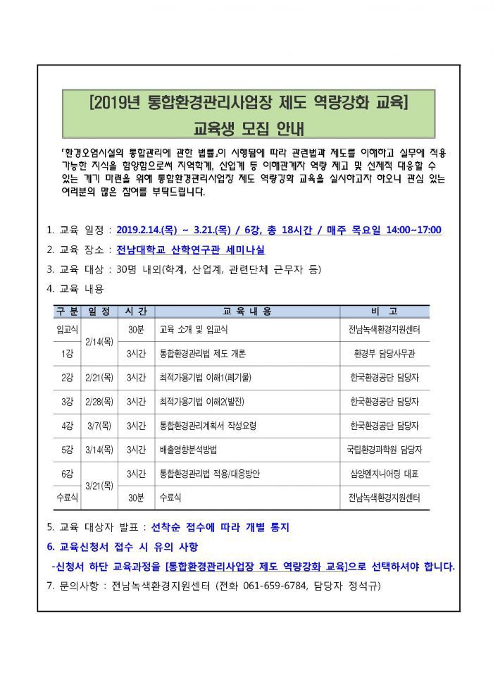 [통합환경관리사업장 제도 역량강화 교육] 교육생 모집 안내