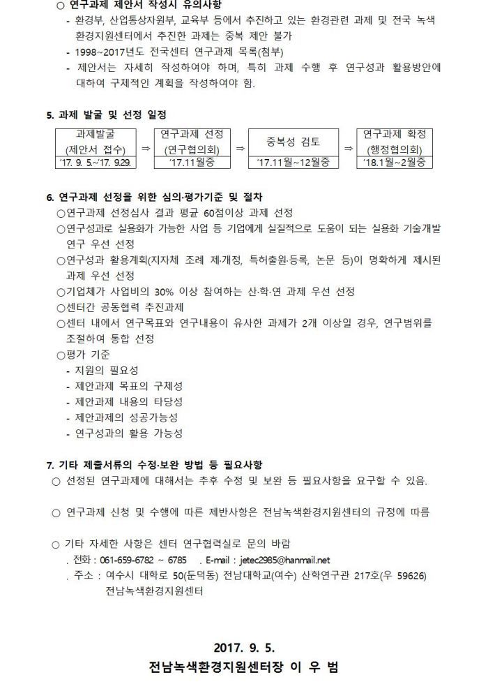 2018년 전남녹색환경지원센터 연구과제 공모 알림